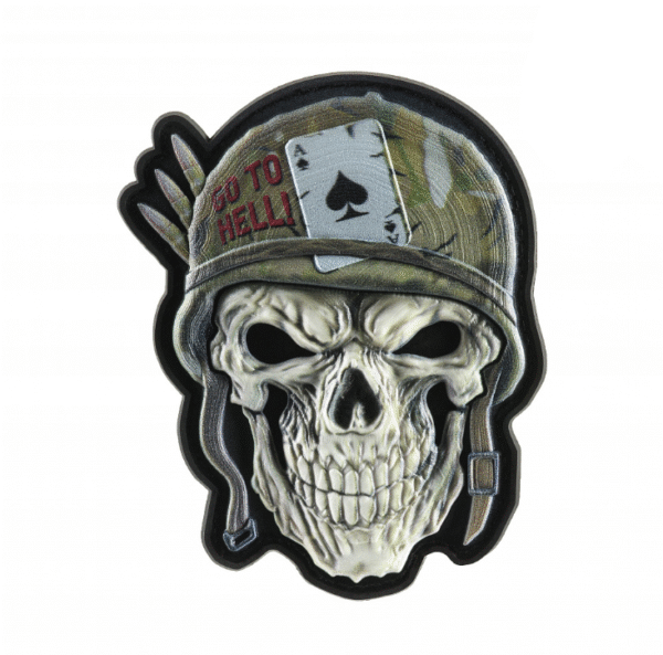 Οι γνώστες της εποχής θα κατανοήσουν και θα εκτιμήσουν το νέο τρισδιάστατο patch από την M-Tac. Κοιτάζοντας αυτό το patch, έρχονται στο μυαλό αναδρομές: η μελωδία από το Fortunate Son των CCR αρχίζει να παίζει στο κεφάλι σας, και κάπου στον αέρα υπάρχει η μυρωδιά του ναπάλμ, υπενθυμίζοντας ότι «κάποια μέρα αυτός ο πόλεμος θα τελειώσει» και θα βιώσουμε τη «μυρωδιά της νίκης». Το patch απεικονίζει ένα στυλιζαρισμένο κρανίο με στρατιωτικό κράνος M1, πάνω στο οποίο τοποθετείται συμβολικά το άσο μπαστούνι – το χαρτί του θανάτου που σπέρνει τον τρόμο στις καρδιές των εχθρών σας. Η επιγραφή GO TO HELL «ευγενικά» καλεί τους εχθρούς στην κόλαση. Το patch είναι κατασκευασμένο από υψηλής ποιότητας PVC χρησιμοποιώντας 3D τεχνολογία, γεγονός που το καθιστά όγκου και η εικόνα του πολύ ρεαλιστική. Το patch στερεώνεται σε ρούχα, τσάντες, σακίδια ή εξοπλισμό με Velcro. Στις συνθήκες της σύγχρονης πραγματικότητας, αυτό το patch αποτελεί μια ιδιαίτερα ενδεδειγμένη προσθήκη στον εξοπλισμό σας.